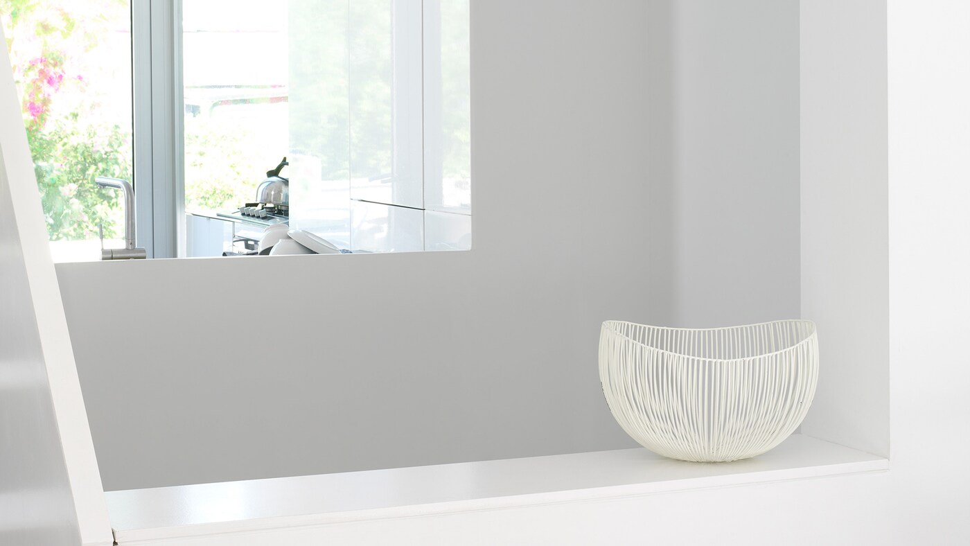 Ces murs en blanc ocre chaud créent une superbe toile de fond pour les accessoires aux lignes simples et les détails naturels, comme les bols en céramique, les vases couleur pierre et les tissus d'ameublement aux fibres naturelles comme le lin ou le coton. Variez les textures et superposez-les pour un style magnifique et apaisant.